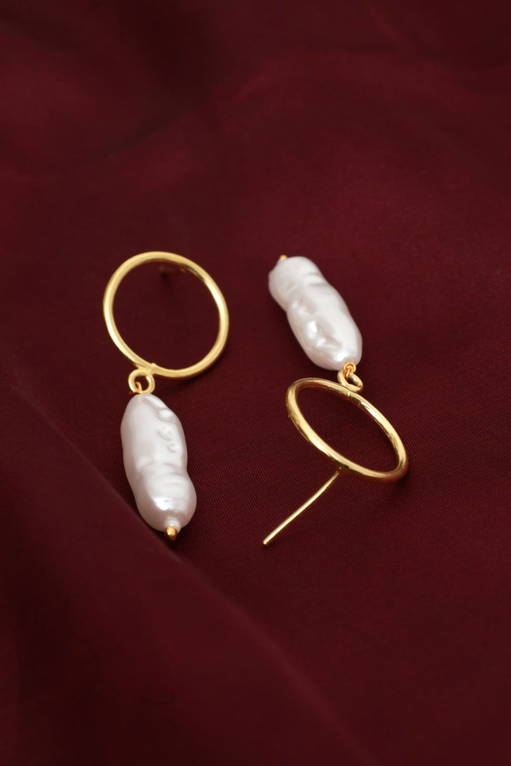 These gold plated baroque pearl hoop earrings feature irregular freshwater pearls on elegant gold hoops, creating a natural, sophisticated, and one-of-a-kind accessory for any occasion.